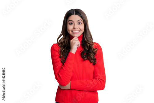 amazement of a teen girl. amazed teenager girl with long hair. feeling amazed. amazed teen girl with curly hair