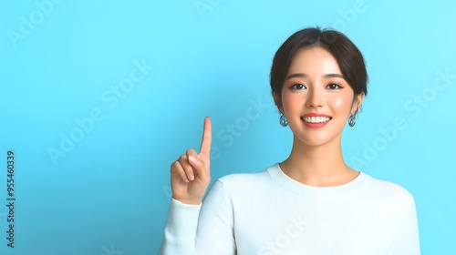 An Asian beauty model gesturing against an isolated background, perfect for a business or commercial wallpaper with blank space for writing.
