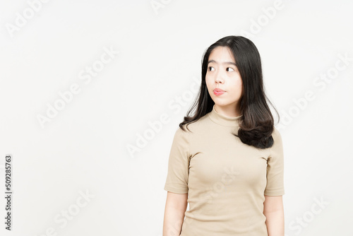 Angry and looking side Of Beautiful Asian Woman Isolated On White Background