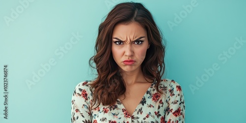 angry woman, solid background, copy space