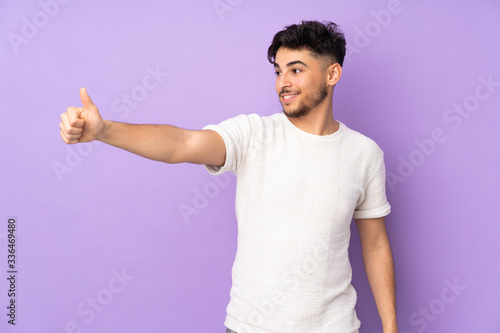 Arabian handsome man over isolated background giving a thumbs up gesture