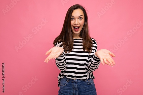 Are you serious? Closeup photo of beautiful attractive positive shocked amazed surprised young woman with open mouth wearing casual clothes isolated over colourful background with empty space