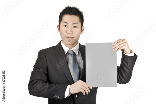 asia business man hold a paper card