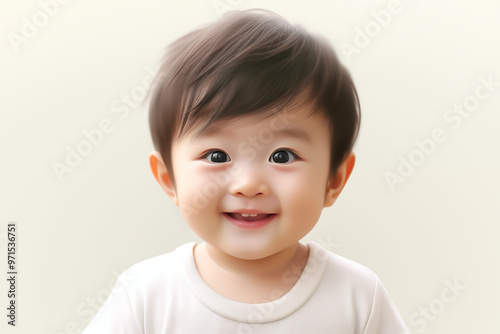 Asian baby on white background. Birth related themes. Childbirth. Asian country. Asian baby. Chinese baby. Japan baby. Image for graphic designer. Image for flyers.