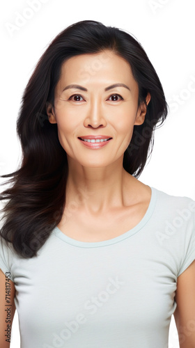 Asian beautiful gorgeous 50s mid aged mature woman looking at camera isolated on a transparent background. Healthy face skin care beauty.