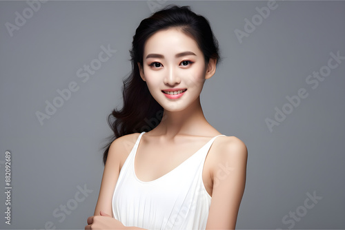 asian beautiful women freah skin asian beauty white skin in summer dress with happy mode indian actor