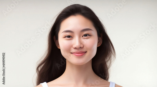 Asian beauty portrait. AI generated The face of a woman beautiful Japanese woman with long hair.Healthy face skin care beauty, skincare cosmetics.The copy space.