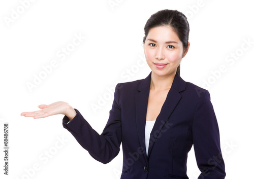 Asian businesswoman with open hand palm