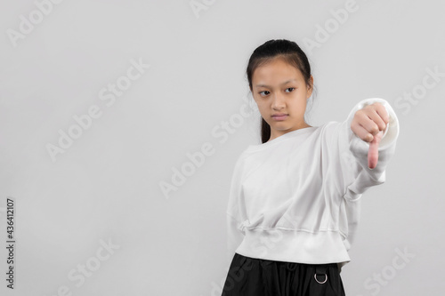 Asian girl studio portrait on gray background