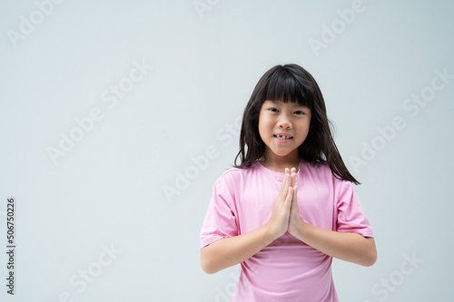 Asian girls offering respect, thai child pay respect