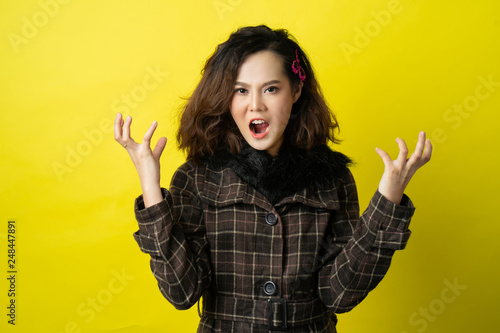 Asian woman are very angry.concept in studio