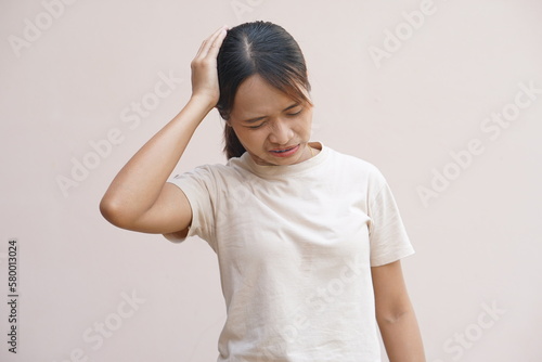 Asian woman having headache with dark underarms