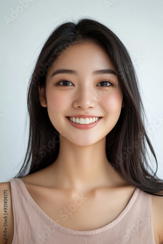Asian woman positive smile on white background, beauty positive smile