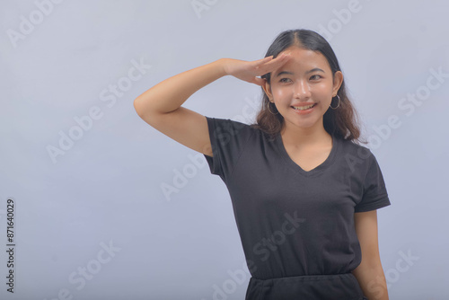 Asian Woman with Curly Long Hair Isolated on White Background
