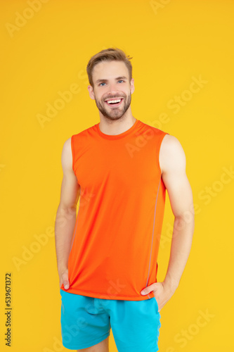 Athletic man. Happy sportsman studio. Sporting man in sportswear. Athletic fitness