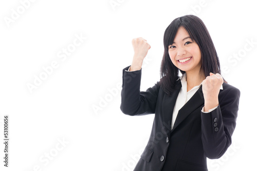 attractive asian businesswoman cheering