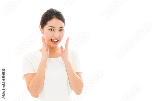 attractive asian woman on white background