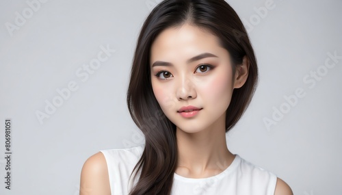 attractive beautiful indenesian female model studio portrait on plain white background from Generative AI