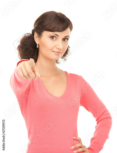 attractive businesswoman pointing her finger