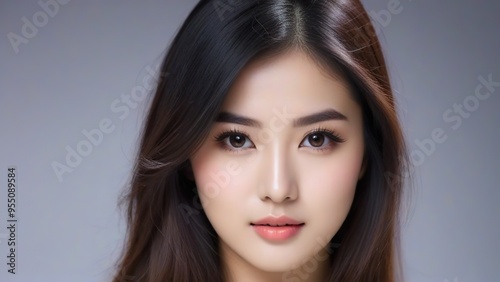 Attractive Girl with Long Hair and Bright Eyes