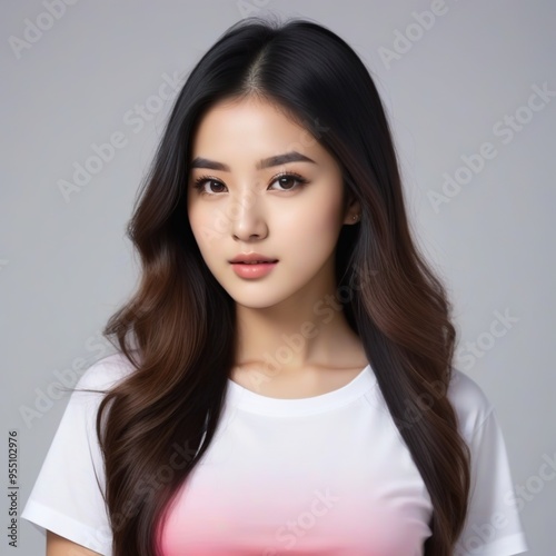 Attractive Girl with Long Hair and Bright Eyes