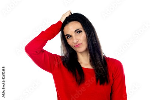 Attractive mature woman wearing red jersey