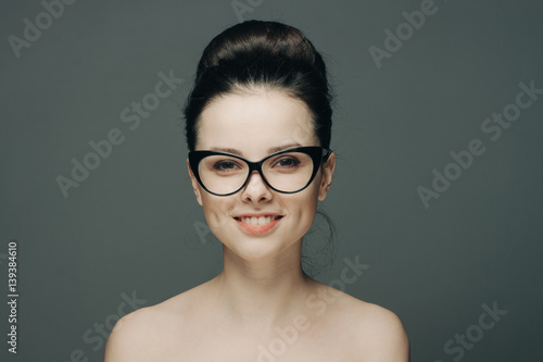 attractive woman with a beautiful smile in black glasses