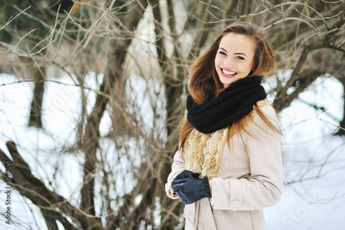 Attractive young girl portrait in a winter park