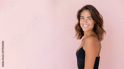 Australian fashionable woman in black sundress happy lifestyle isolated