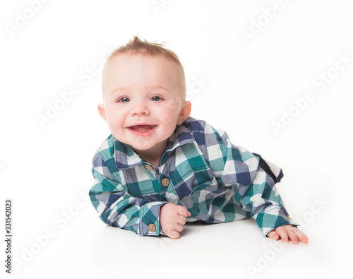 Baby boy sitting on the floor, calm and relaxed