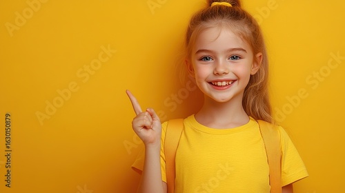 Back - to - School Cute Girl, Pointing Gesture, Campus Innocence Atmosphere