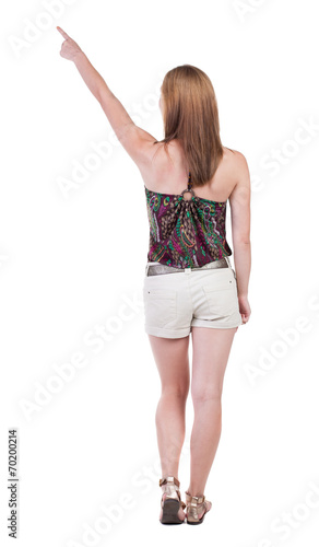 Back view of pointing woman.