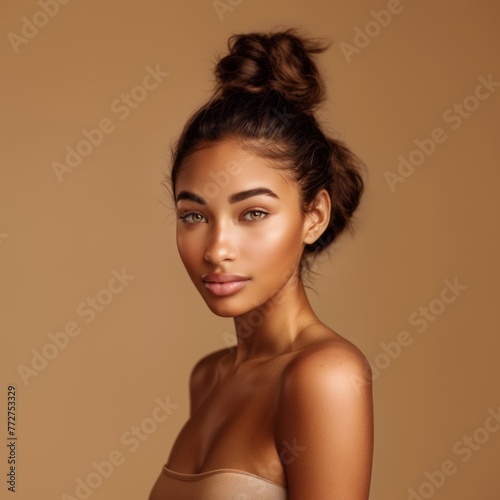 Beautiful African American woman, glowing perfect skin, beauty industry, beauty and health.