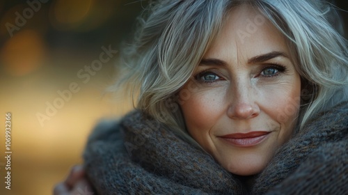 Beautiful aged blond woman hugging her grey-haired husband in park