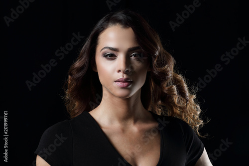 Beautiful and attractive model in black dress.