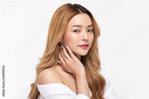 Beautiful Asian woman look at camera smile with clean and fresh skin