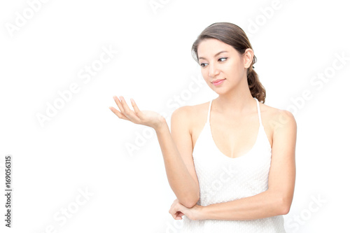 Beautiful Asian Woman Portrait Beauty Skin Care Concept. Fashion Beauty Model isolated on white