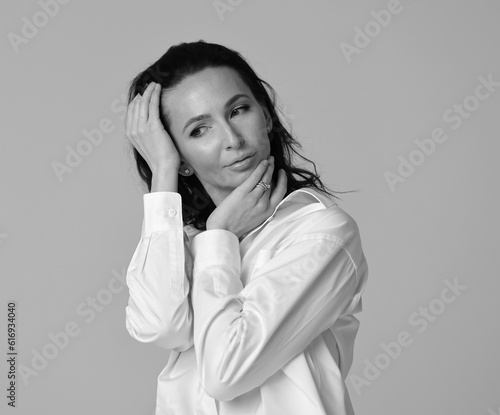 Beautiful black-haired woman, girl, studio portrait, Lithuanian pianist, accompanist, artist