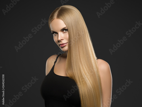 Beautiful blonde hair woman beauty makeup long healthy harstyle model