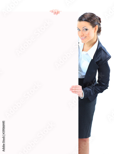 Beautiful business woman with a white banner.