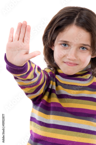 Beautiful girl saying stop with her hand