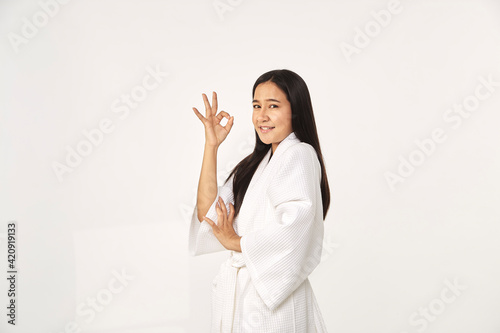 Beautiful girl wearing white bathrobe