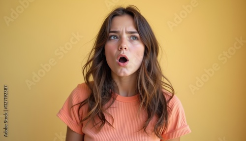 Beautiful girl's emotional face on a plain background. An amazing depiction of innocence and elegance.