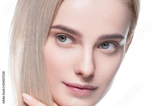 Beautiful hair woman blonde long hairstyle beauty healthy skin face closeup