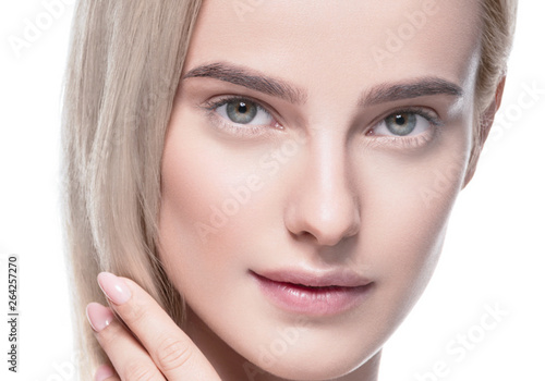 Beautiful hair woman blonde long hairstyle beauty healthy skin face closeup