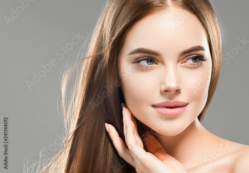 Beautiful hair woman long brunette hairstyle female healthy skin beauty makeup cosmetic concept
