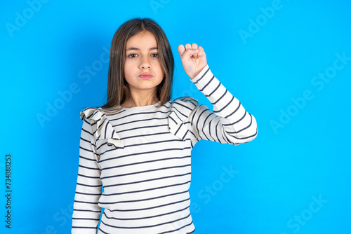 beautiful kid girl wearing plaid shirt pointing up with fingers number ten in Chinese sign language Shi