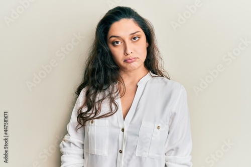 Beautiful middle eastern woman wearing casual clothes depressed and worry for distress, crying angry and afraid. sad expression.