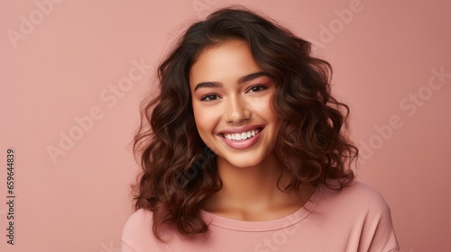 Beautiful model girl with long wavy and shiny hair . Brunette woman with curly hairstyle