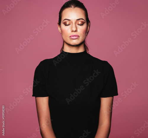 Beautiful relaxed woman with perfect skin and makeup